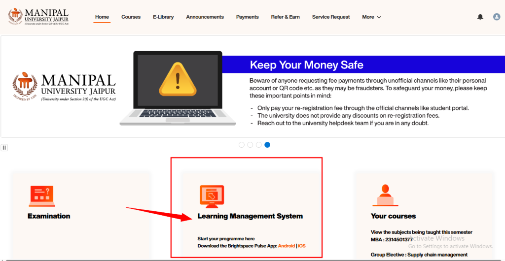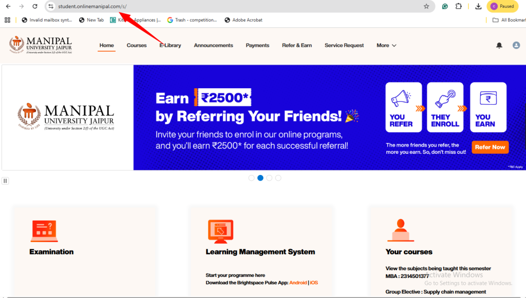 - Open your browser and visit the official MUJ student portal