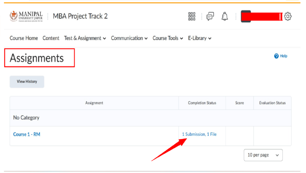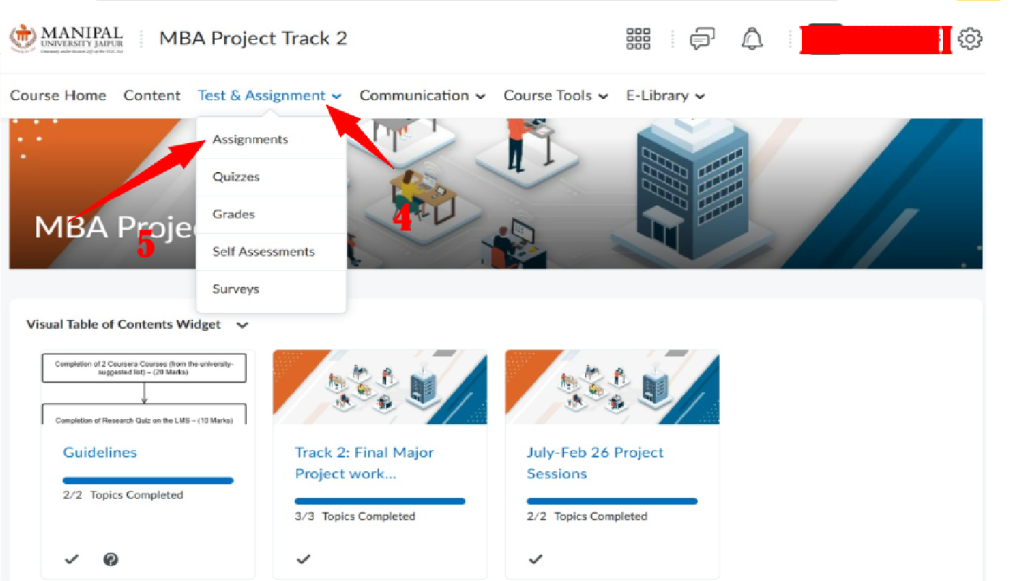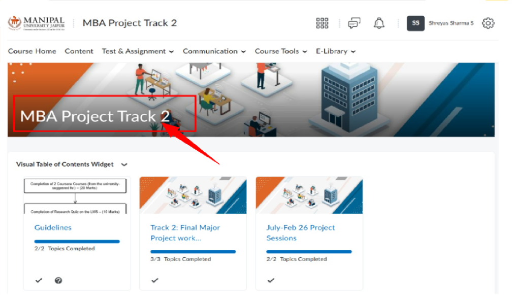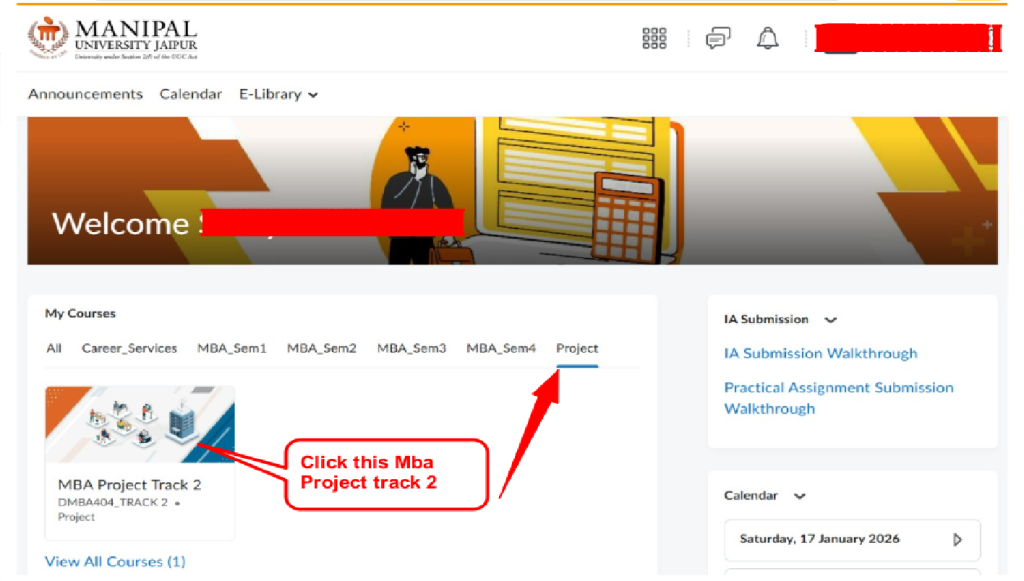 - Under Project tab, click on MBA Project Track 2 (DMBA404 – TRACK 2)