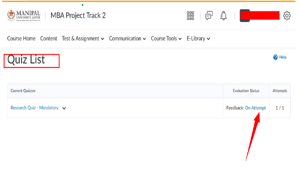 - Steps to access the quiz: Test & Assignment → Quizzes