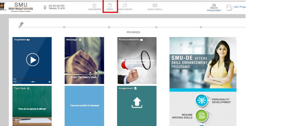 Step 2: click on “”Learn” on the Dashboard