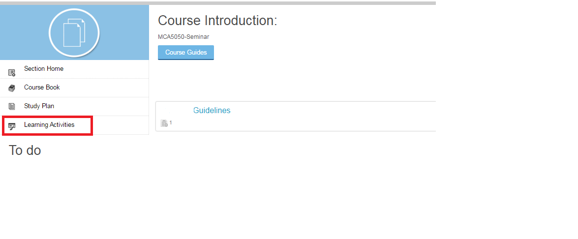 Step 3: Click on BLT605 Project Synopsis class room and select the “Learning Activities”